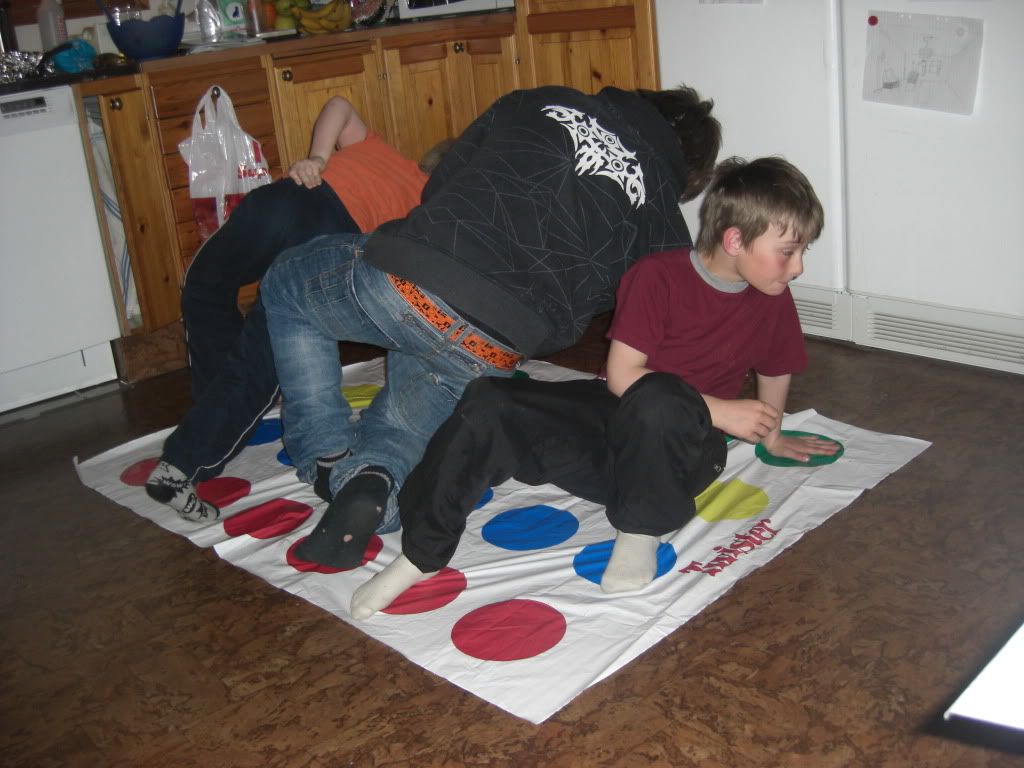 Men Twister ägde de, karlarna! Vet inte om prestigen var högre när det gällde att tänja ledband och undvika intimitet än när det gällde att plåga stämband och locka till populäritet, men de höll sig på mattan länge, minsann!