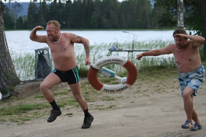 Och där inföll också dagens höjdpunkt och ett fantastiskt avslut på en underbar dag. Med ytterst, ytterst lite motivation och lite regi gav sig Fredrik och Jimmie i kast med posering inför den kommande kalendern. Jag och Karin skrattade så att vi till slut låg och grät i gräset. Resultatet blev en diger samling foton som kommer att publiceras på lämpligt sätt, så håll ut! Ett litet smakprov bjuder vi i alla fall på.